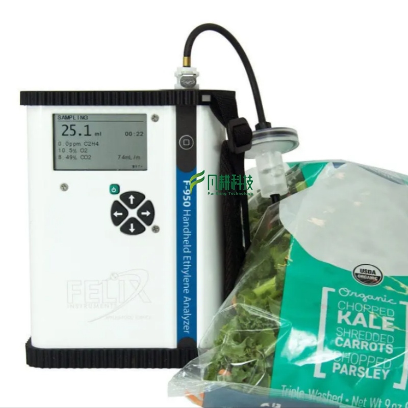 便携式乙烯分析仪F-950用于测量气体中的C2H4、CO2和O2水平,可应用于气调包装检测、冷库和气调库环境检测等场景。乙烯气体浓度是影响产品的果蔬产品的重要参数。本产品操作简单,重量不到一公斤,F-950使用电化学电池测量空气中0-200 ppm的乙烯。可记录日期、时间、相对湿度、温度和GPS位置。便携式乙烯分析仪是测量多种水果蔬菜乙烯生成量的理想设备。